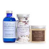Ingredients: Cold Expeller Pressed Oils of Sweet Almond and Organic Sunflower, Onurth's Proprietary Blend of Lavender Essential Oils, Vitamin E.Ingredients: Pure Dead Sea Crystals, Organic Herbs of Chamomile, Rose Buds and Lavender Flowers, Onurth's Proprietary Blend of Lavender Essential Oils.